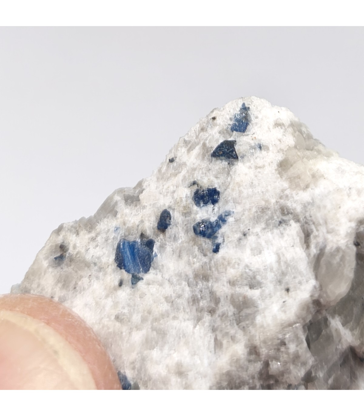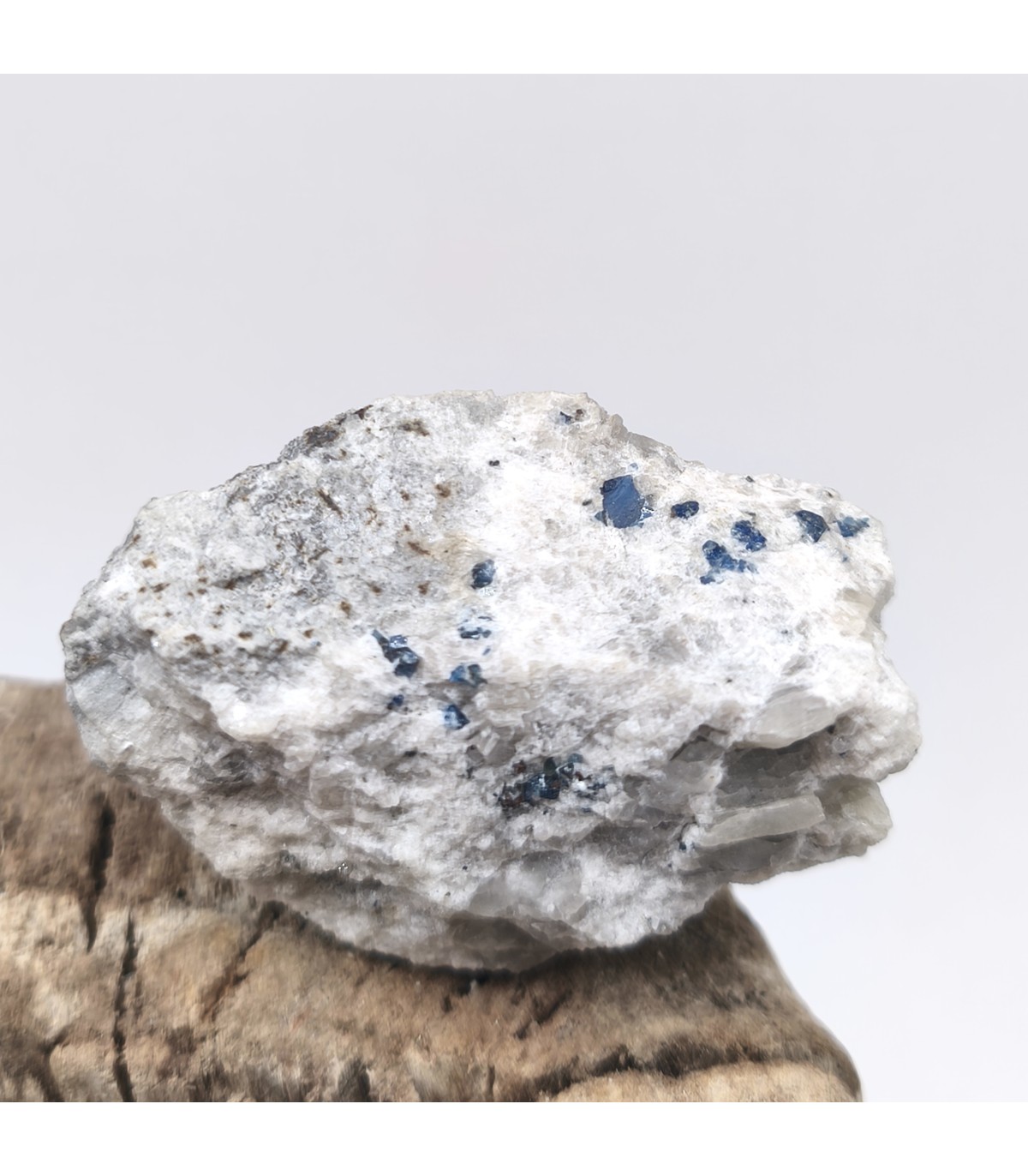 pièce intéressante de saphir auvergnat de la region de menet. Le cristal principal mesure 3mm;il est brillant avec une forme assez géométrique. les cristaux sont nombreux dans cette matrice d'anorthosite. pièce récoltée dans la carrière du puy de ménoyre par Mr Champreux alors exploitant de diatomites à murat. le contraste est bon.
