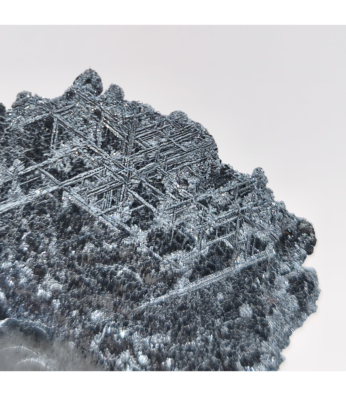 Lame d'hématite fumerollienne de belle taille de la chaine des Puys. On voit des figures réticulées sur partie de ce cristal. La brillance est extrême ; le tout est flottant..